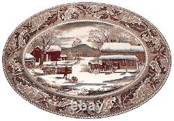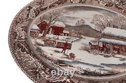 Exceptional serving platter know as Home for Thanksgiving, part of the Historic America series - made in England by Johnson Bros. This example is in excellent, original, clean and ready to use or display, showing only a TINY and inconsequential glaze skip along the outer edge, please see images.